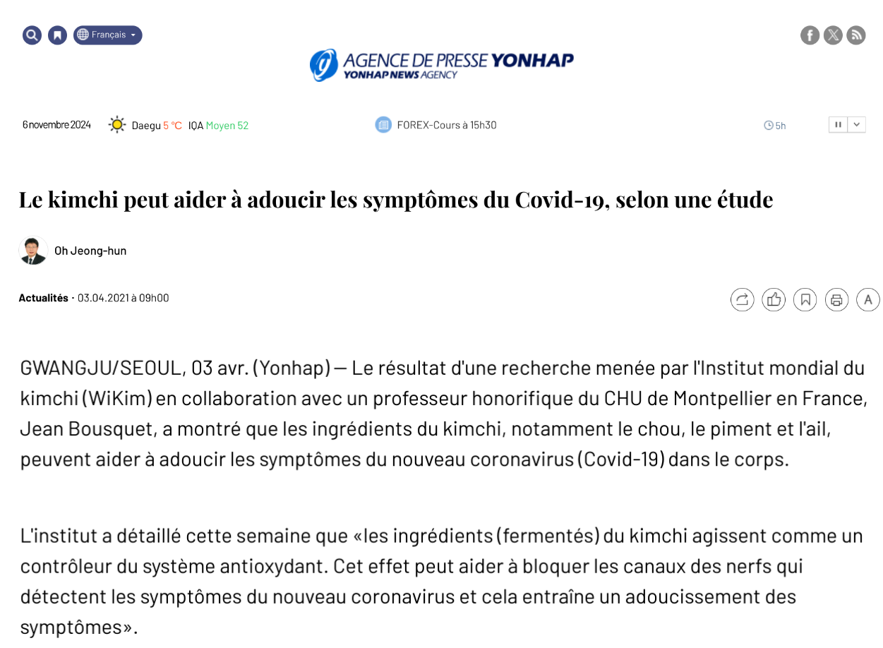 Un aliment fermenté qui a fait ses preuves lors de la pandémie du Covid-19, c’est le kimchi ! Les coréens en consomment tous les jours et s’ils ont eu un taux de mortalité si bas, c’est en grande partie grâce à lui.